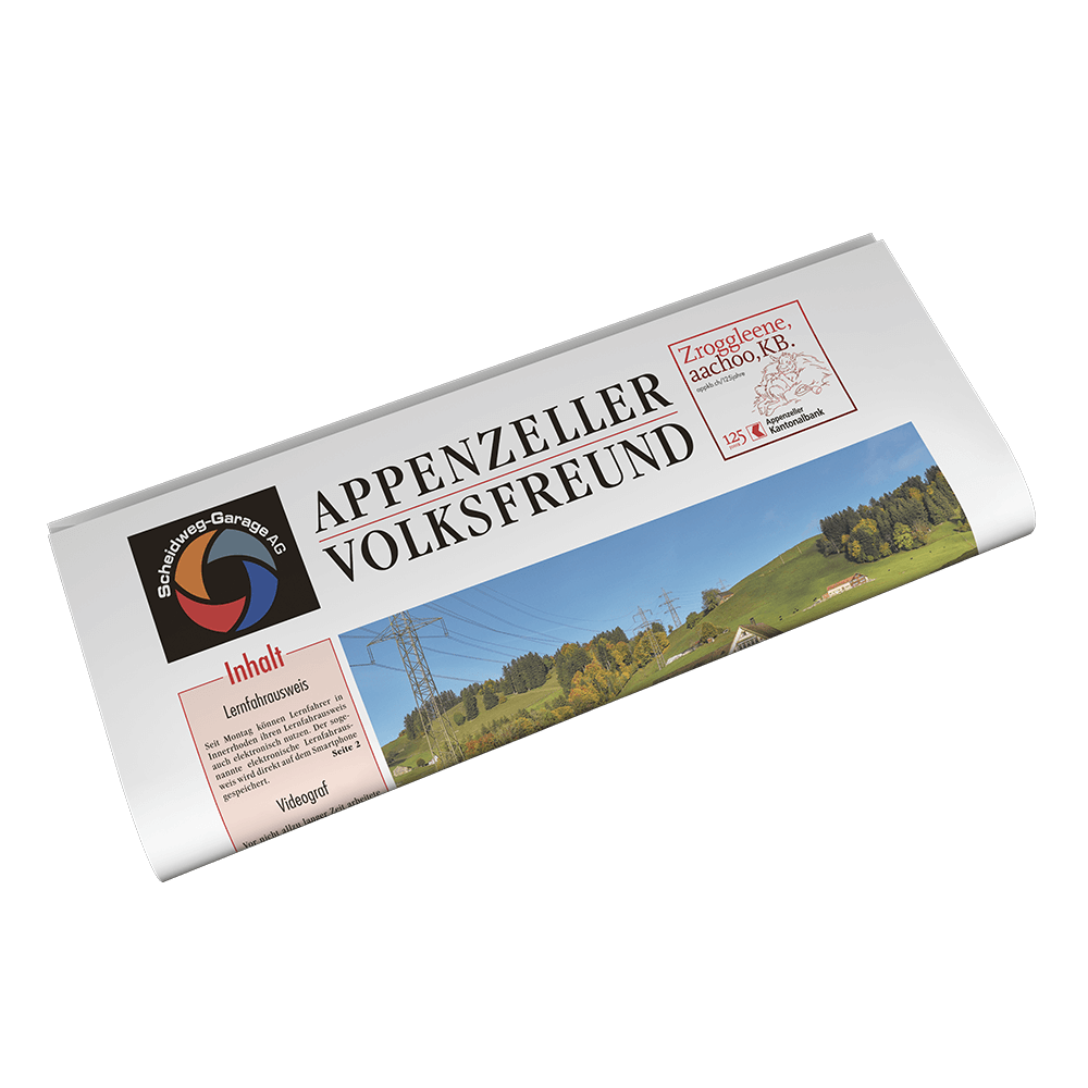 Schenken Sie Lesefreude mit dem Appenzeller Volksfreund! Erscheint 4-Mal in der Woche: Dienstag, Mittwoch, Donnerstag, Samstag.